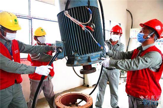 鄂城公司得悉千畝湖泵站增容的情況后,運(yùn)檢、物資、檢修建造工區(qū)靈敏發(fā)起聯(lián)動(dòng)應(yīng)急模式,相互配合。鄂城公司物資中心調(diào)運(yùn)的315千伏安的變壓器被拉到現(xiàn)場,碧石供電所的工程車從鄂城公司將電纜相應(yīng)的配電柜設(shè)備也按預(yù)定時(shí)刻趕到了現(xiàn)場。