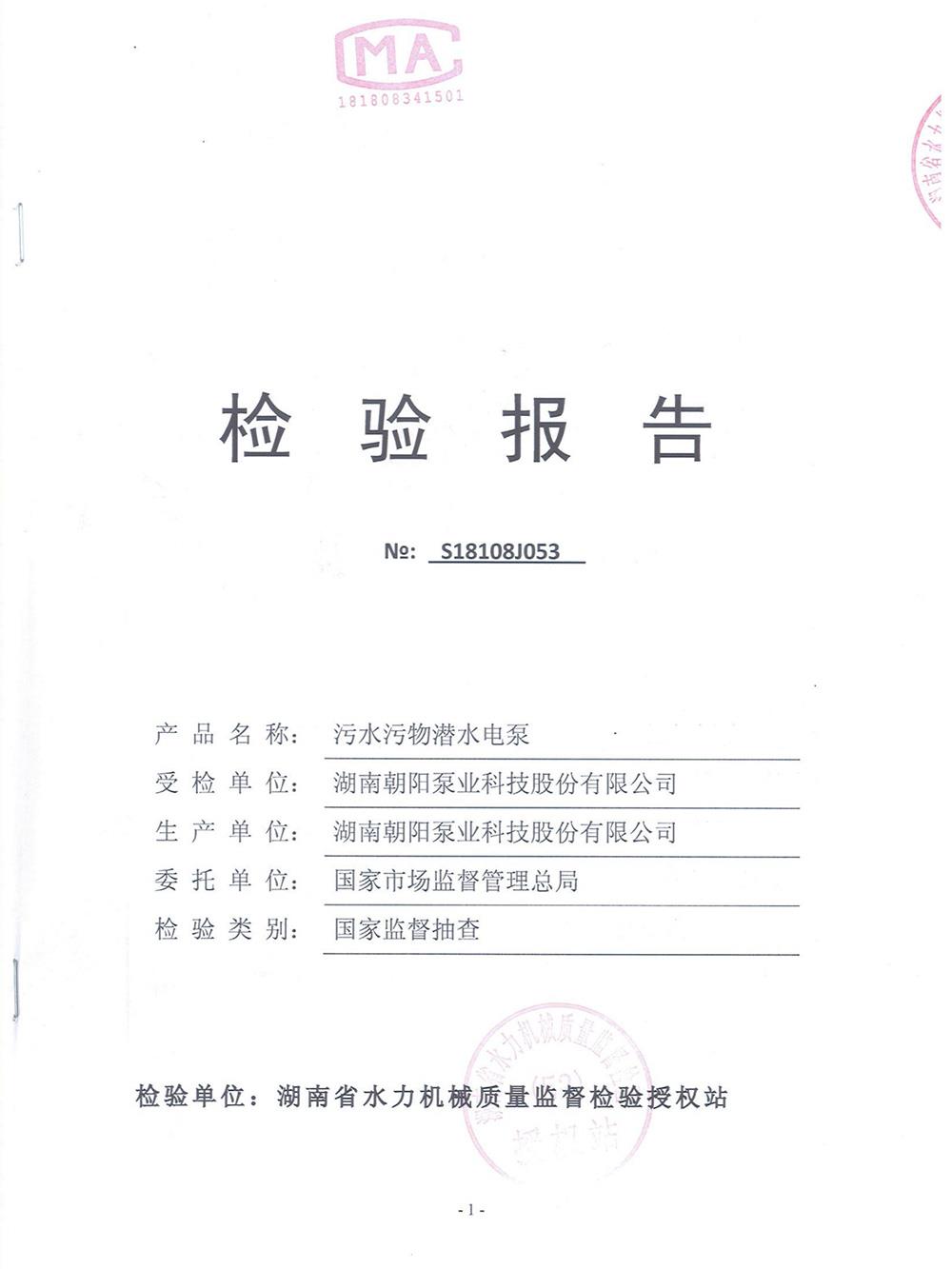湖南省水力機(jī)械質(zhì)量檢驗(yàn)報(bào)告