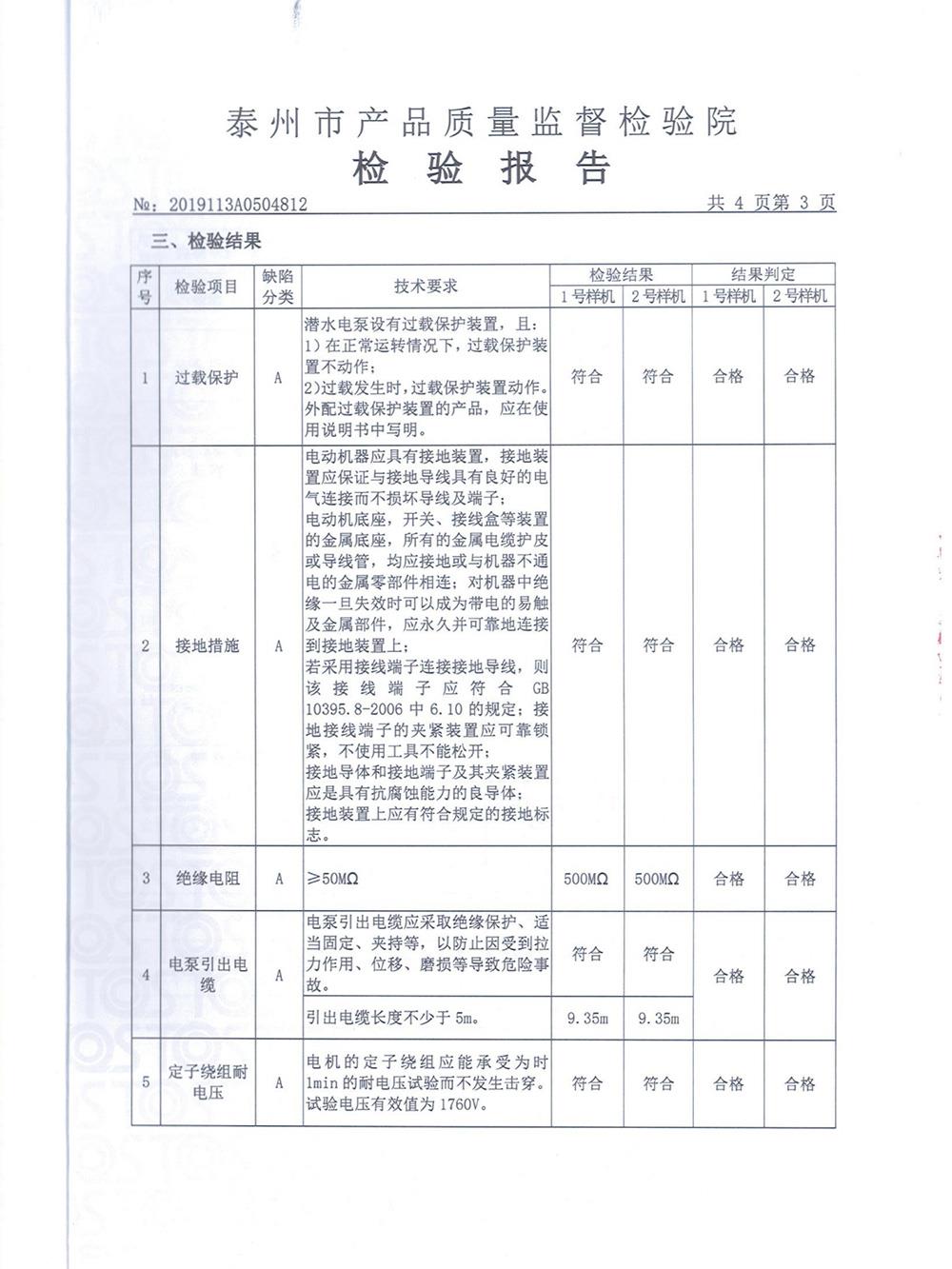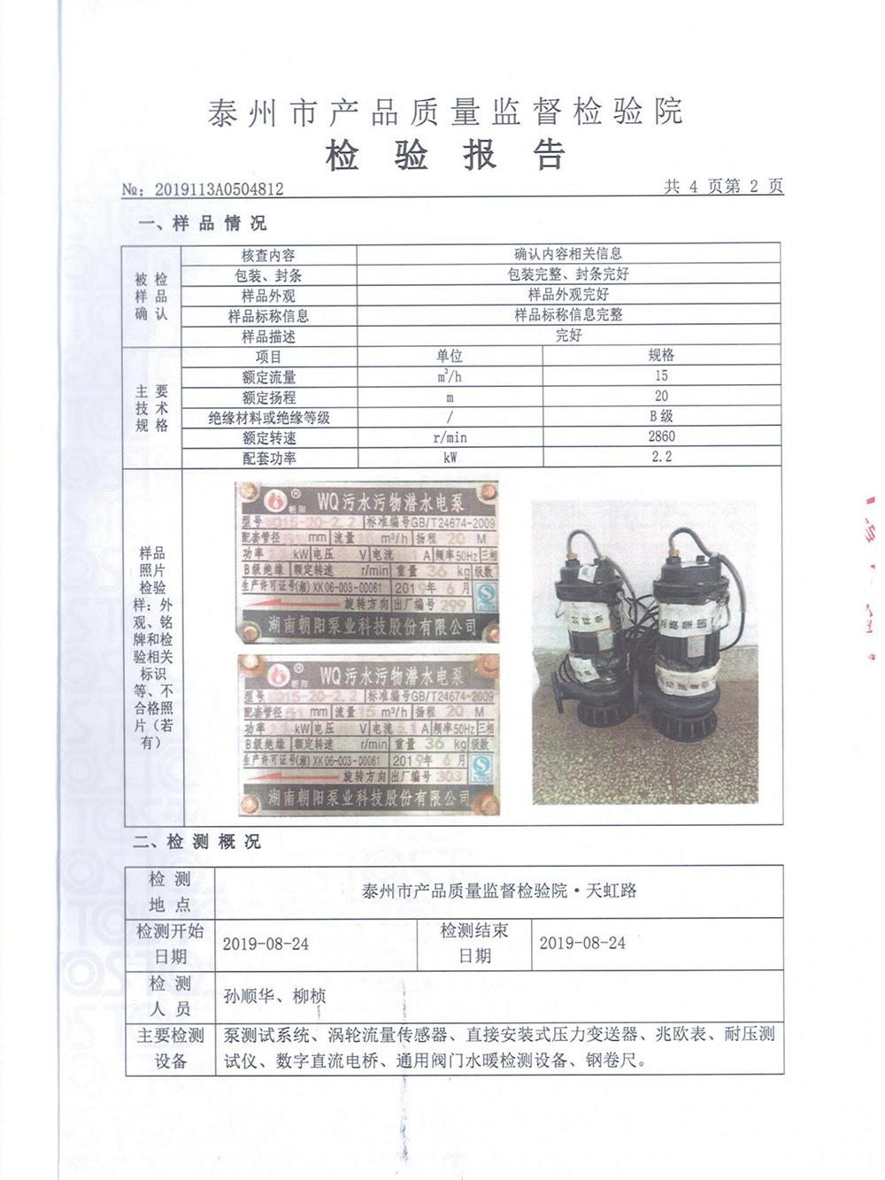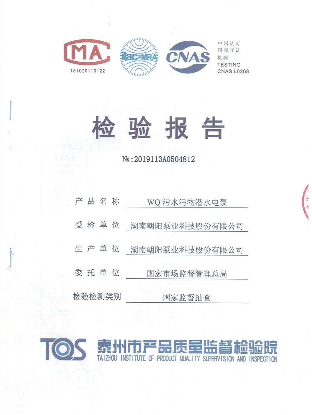 WQ污水污物潛水電泵檢測報(bào)告